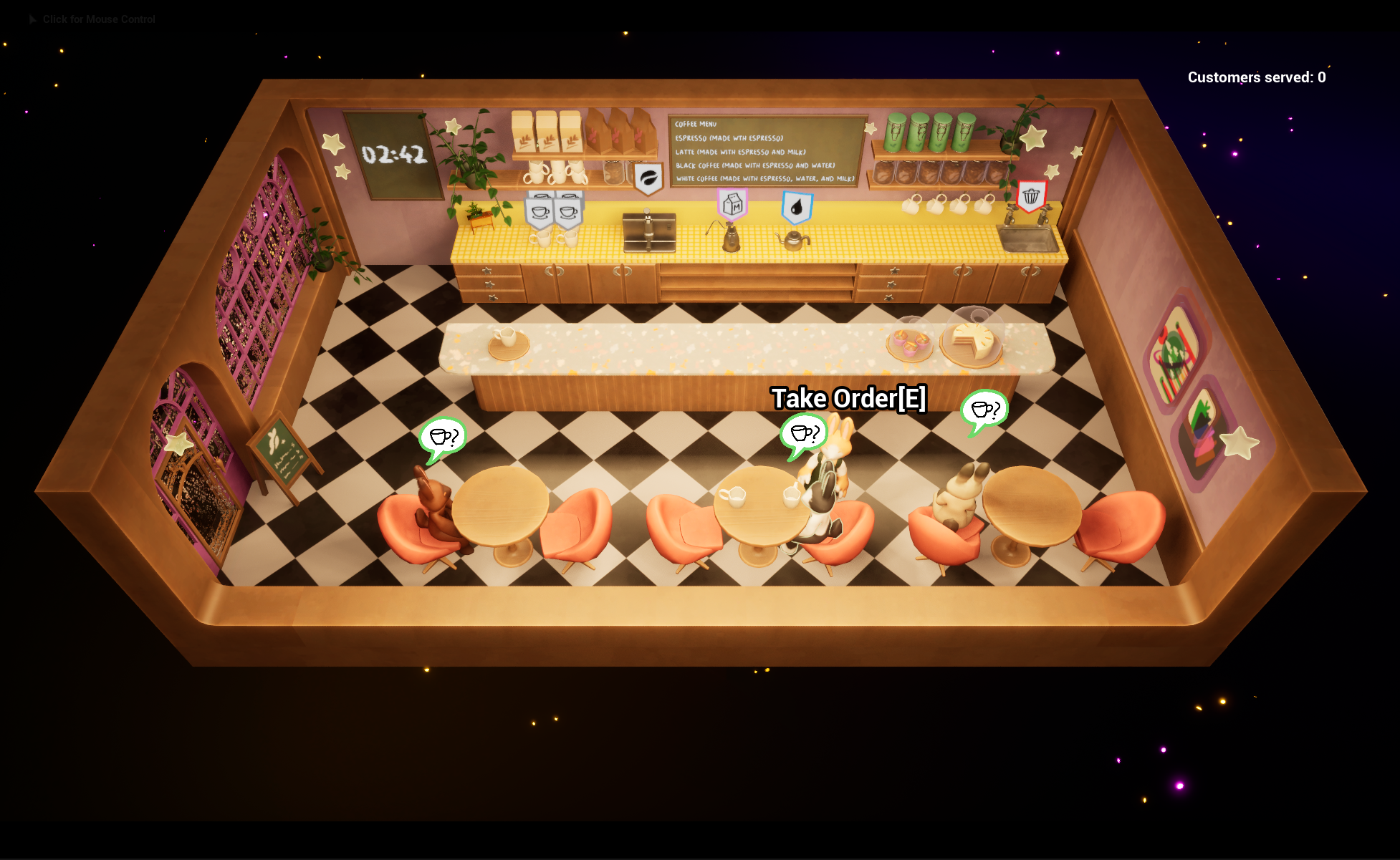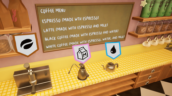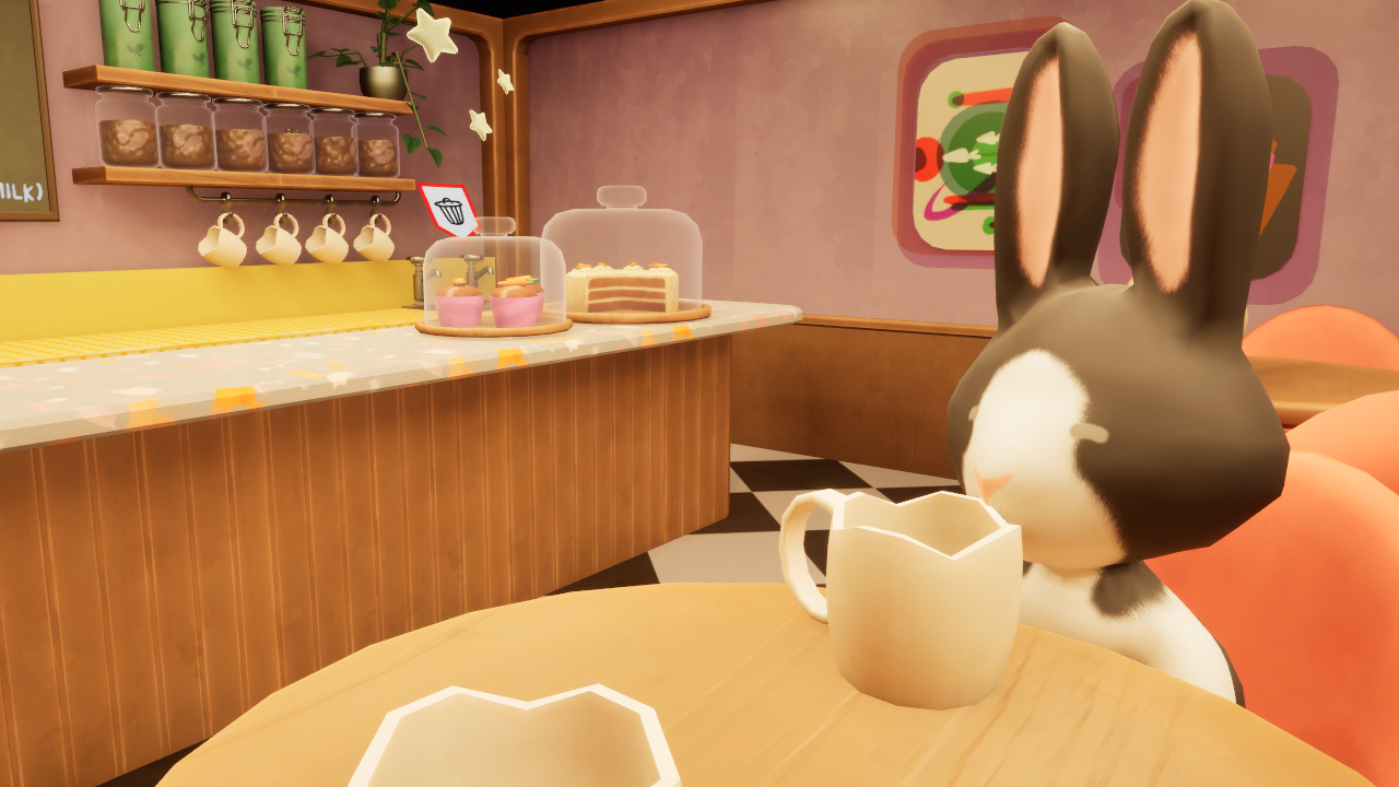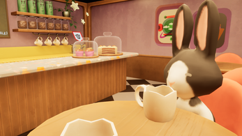 In a world of cute anthro bunnies, you just opened a small sit-in cosy cutesy coffee shop in the 1960s where the cute local citizens come in to relax from their busy lives. In this order-fulfilment game, you must approach customers to take their orders and rush to the kitchen to prepare them, before hurrying the drinks back to the waiting customers.